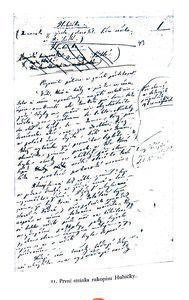 Rukopis nadpisu a prvních vět povídky Hubička. Světlá ji opatřila podtitulem_Humoreska ze života pohorského lidu. _