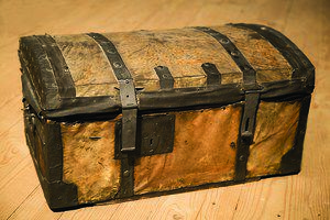 Cestovní zavazadlo, s kterým Karolina Světlá jezdila na léto do Ještěda. Světlá o tomto kraji totiž nemluvila jako o Podještědí, jak jsme na to zvyklí dnes, ale jako o Ještědu – tak se v nářečí obecně říkalo celému pohorskému okolí Světlé pod Ještědem. Z Prahy do Hodkovic nad Mohelkou jezdili Mužákovi dostavníkem a zde přesedali na ne vždy zcela pohodlné povozy, které je dovezly až na Světlou (později do Doleních Pasek). Jen jednou jeli Mužákovi z Prahy do Hodkovic vlakem. Kufr Karoliny Světlé si můžete prohlédnout v expozici Podještědského muzea v Českém Dubu. Jeho rozměry jsou 60cm x 35cm x 30cm.