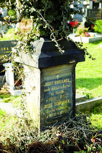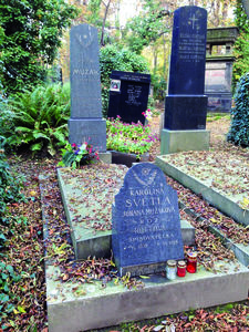 Nicht nur das Leben unter dem Jeschken, auch der Tod und die mit ihm verbundenen Bräuche fanden Eingang in die Werke Karolina Světlás. Als im Kreuz am Bach (1868) der Müller stirbt, heißt es: Nach der Aussegnung reihten sich die Müller aus der Gegend um den Sarg auf; er war rot gestrichen, mit blauen Blumen bemalt und grünen Zweigen umkränzt und ausgelegt. Wie in einer Laube lag der Müller darin. Der alte Friedhof von Světlá befand sich ursprünglich bei St. Nikolaus, 1858 wurde er aufgelassen und allmählich hierher verlegt. Viele Verwandte von Petr Mužák, dem Ehemann Karolina Světlás, sind hier bestattet. Im vorderen Drittel links finden wir das Grab von Sefka, Josefa Sluková (1827-1908), der Schwester Petr Mužáks. Karolina Světlá starb am 7. September 1899. Sie liegt zusammen mit ihrem Mann auf dem Friedhof in Prag-Olšany. Ein erstes Denkmal für die Schriftstellerin wurde bereits 1910 enthüllt, nur elf Jahre nach ihrem Tod: auf dem Karlsplatz in Prag. 1931 errichtete man ihr auch ein Denkmal in Světlá.