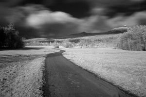 The top of Mt. Ještěd has dramatically changed over time. In 1838 the Rohan Stone was placed there, marking the border between the Rohan and Clam-Gallas estates. In 1868 the Rohan Chalet was built. In 1905-1906 the German Alpine Society for the Ještěd and Jizera Mountains [Deutscher Gebirgsverein für Jeschken- und Isergebirge] built an alpine hotel with observation tower. The hotel burned to the ground in 1963, the chalet a year later. Today’s Ještěd tower with a hotel and a restaurant was opened in 1973. It was designed by Karel Hubáček, who was awarded the prestigious Perret Prize by the International Union of Architects. In the year 2000, Ještěd was proclaimed the Czech Building of the Century. In the works of Karolina Světlá you often find images, myths and laymen’s meteorological observations relating to Ještěd. It was as if it had a sea inside… smoke began to somehow filter down from the mountain, soon one could not see the mountain for the clouds, it didn’t even last one hour, how it began to drizzle from the mountain and then pour down in buckets. Not far from here you can see a larch tree which is connected to a short story The Larch of Maria Theresa [Modřín Marie Terezie, 1880]. In this story, Světlá depicted the hopes which the Czech nation placed on Empress Maria Theresa.