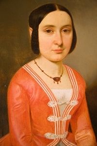 Osmnáctiletá Karolina Světlá na olejomalbě J. Myslivečka z r. 1848. Ve vyobrazeném oblečení se zúčastnila plesu na Žofíně na počest Slovanského sjezdu. Červená kazajka – velmi vybledlá, ale vzorem zapínání jednoznačně rozpoznatelná – je dodnes uchována v Podještědském muzeu, stejně jako Myslivečkův obraz. Obraz bez rámu má rozměry 23,5cm x 19,5cm.