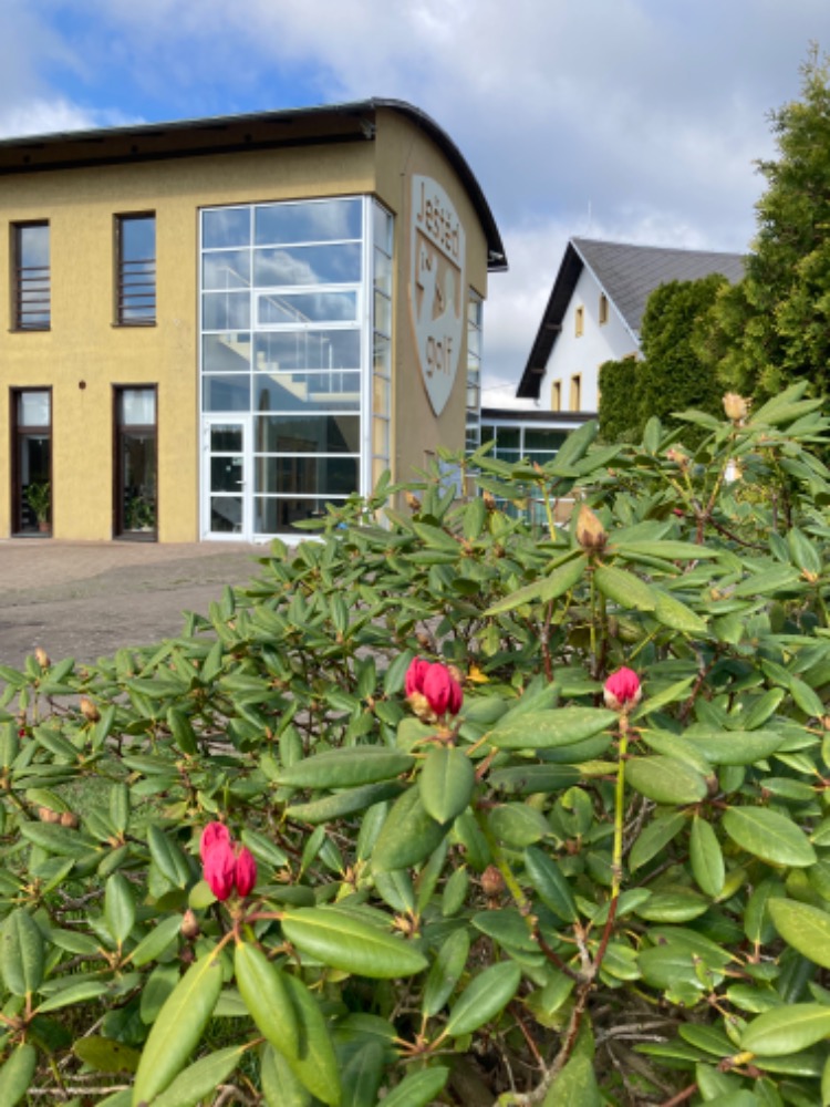 Vítejte v srdci Podještědí: Vedle pomníku Karoliny Světlé a v těsné blízkosti informačního panelu č. 1 naučné stezky jsme vysadili Hugovu růži (rosa hugonis). Je to bujná keřová růže se žlutými kvítky, hit našich babiček.